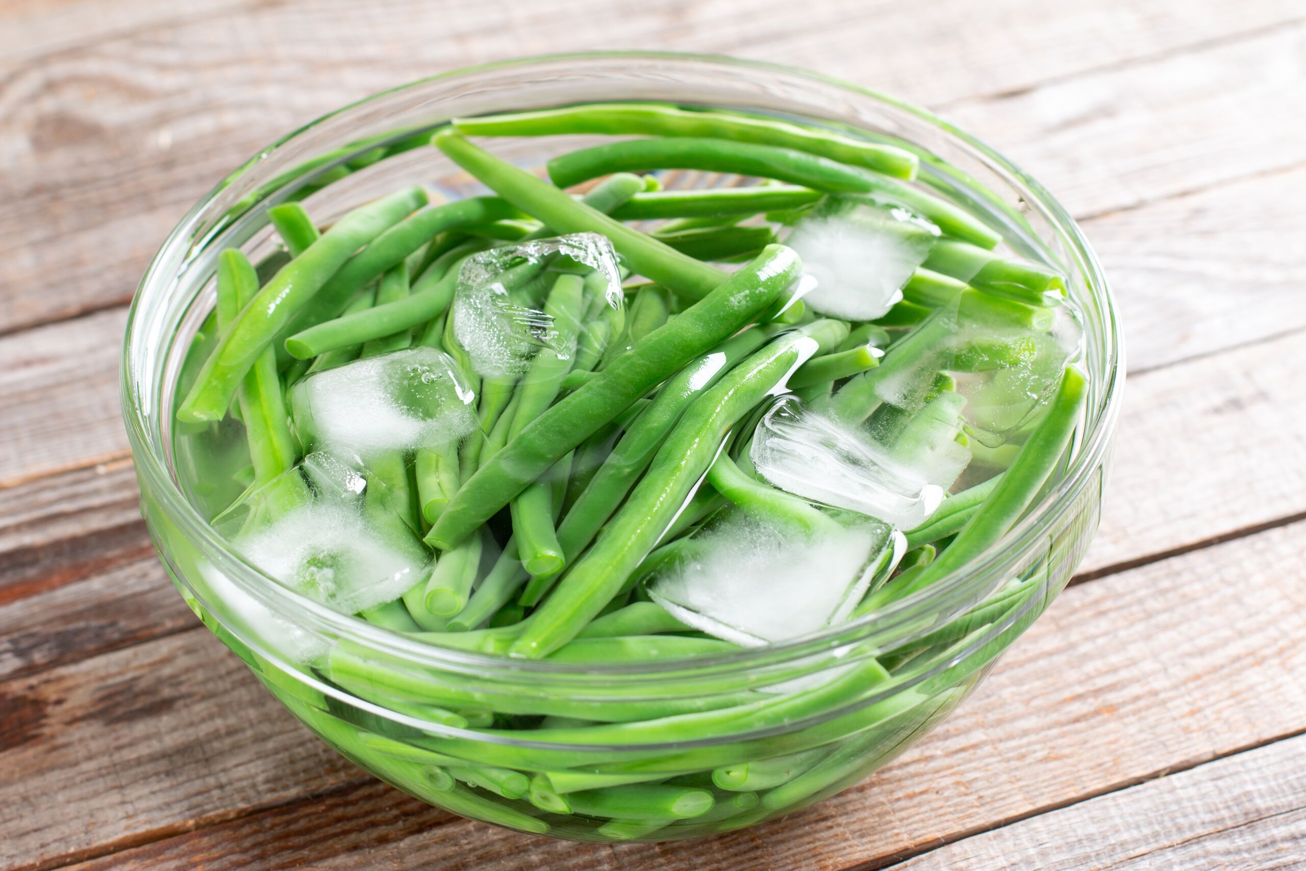 - A megfelelő idő elteltével egy szűrőkanál segítségével vedd ki az alapanyagot a forró vízből, és azonnal tedd át a jeges vízbe.