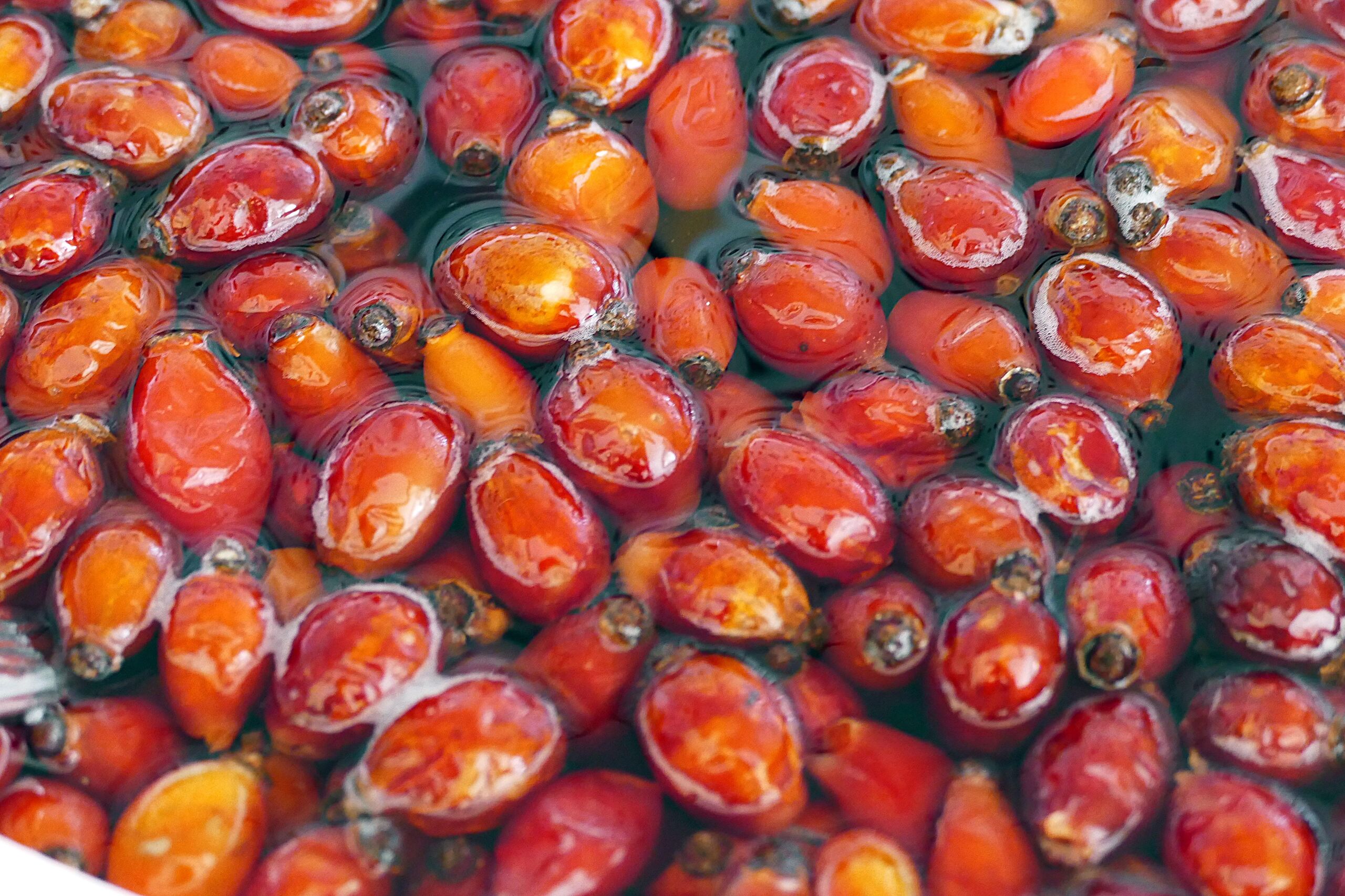 A csipkebogyókat mossuk meg, majd távolítsuk el a végüket. Ezután vágjuk ketté a bogyókat, majd kaparjuk ki a magját és a szőreit. Öntsük fel annyi vízzel, amennyi jól ellepi, majd kis lángon főzzük egy órán át. Utána egy kis lyukú szűrőn fakanál segítségével passzírozzuk át. Így biztosan nem kerül bele a héja és az esetleges benne maradt szőrök.