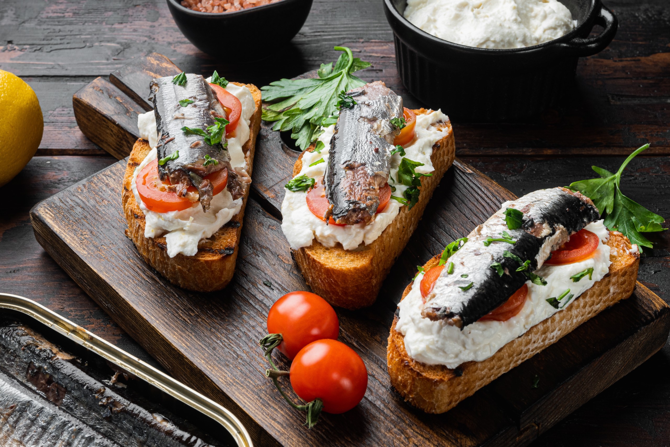 - Kanalazzuk a szószt a pirítósra, tegyük rá a szardíniát, majd szórjuk meg szezámmaggal. Végül csepegtessük rá a chiliolajat, és adjunk hozzá extra citromlevet.