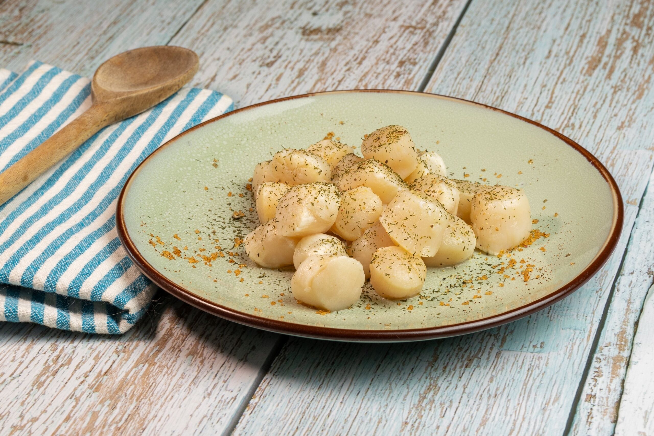 Hazánkban viszonylag nehézkes hozzájutni friss fésűkagylóhoz, de szerencsére az ízét és az állagát tekintve a fagyasztott, bolti verzióból is tökéletes fogás készíthető. Egy dologra érdemes figyelni vásárlás közben: mindenképpen úgynevezett száraz fésűkagylót szerezzünk be, a nedves alapanyag ugyanis sóoldattal és egyéb adalékokkal dúsított, ami megakadályozza, hogy a kagyló külseje ropogósra süljön.
