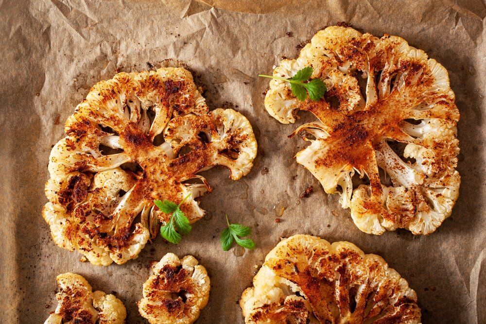 Ha egy semlegesebb, könnyedebb zöldségre vágynánk, válasszuk a karfiolt. Egy nagy kés segítségével vágjuk a fejet 2-3 centiméter vastag szeletekre, majd kenjük meg olajjal, illetve adjunk hozzá egy kis fűszert.