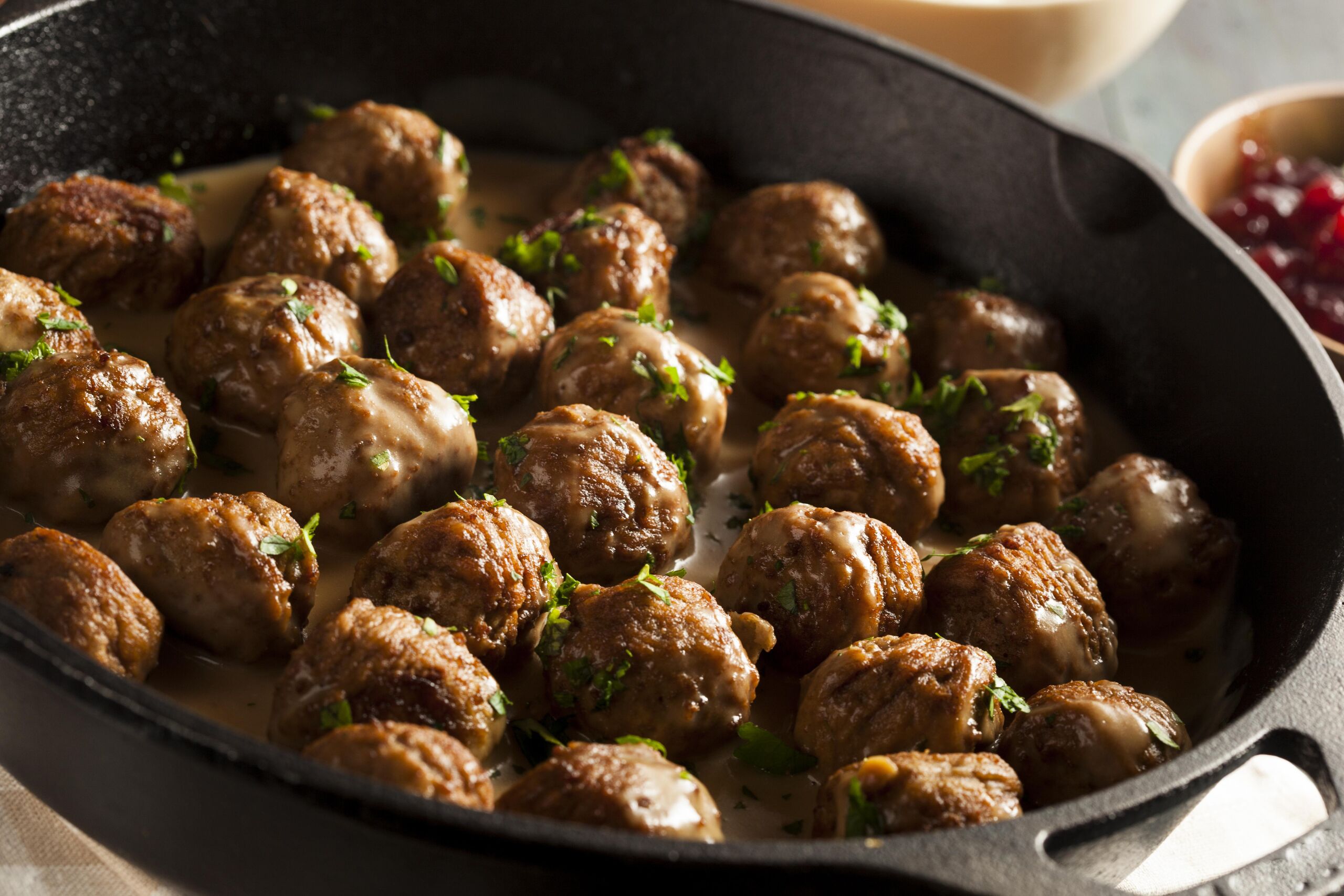 A darált húst összekeverjük a zsemlemorzsával, az apróra vágott vöröshagymával, a zúzott fokhagymával, a habtejszínnel és a tojással, majd mustárral, sóval, borssal, szerecsendióval ízesítjük, ezt követően pedig alaposan összedolgozzuk. Ha a massza összeállt, kisebb húsgolyókat formázunk belőle. Annak érdekében, hogy jobban összeálljon tányérra tesszük és letakarva a hűtőben hagyjuk körülbelül két óra hosszáig. Amennyiben letelt a két óra, vajat olvasztunk egy nagyobb serpenyőben, majd ezen többször átforgatva körbepirítjuk a húsgombócokat.