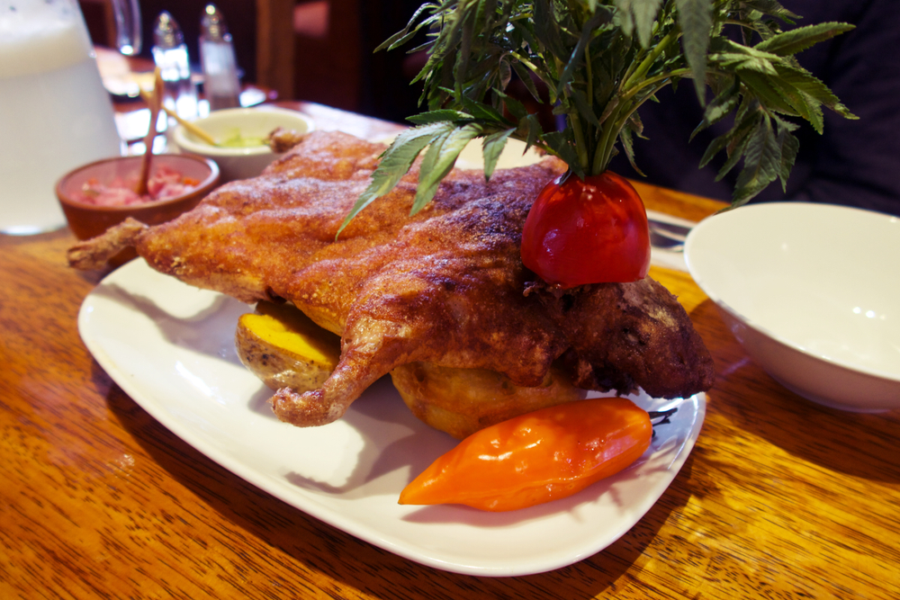 A lista kétségtelenül legfurább étele az Andok térségéből származik, ahol a tengerimalac – vagyis a cuy – már évszázadok óta részét képezi a helyi konyhának. Különösen ünnepekkor, köztük húsvét idején fogyasztják. A háziállatként is tartott emlőst általában egészben, egy fűszeres pácban sütik ropogósra. Íze a beszámolók szerint a nyúléhoz vagy a csirkééhez áll közel.