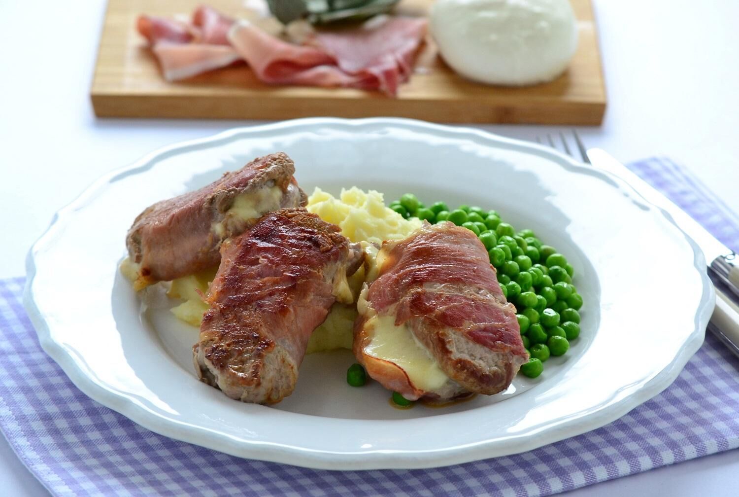 Főétel: Sertés szűz saltimbocca mozzarellával töltve