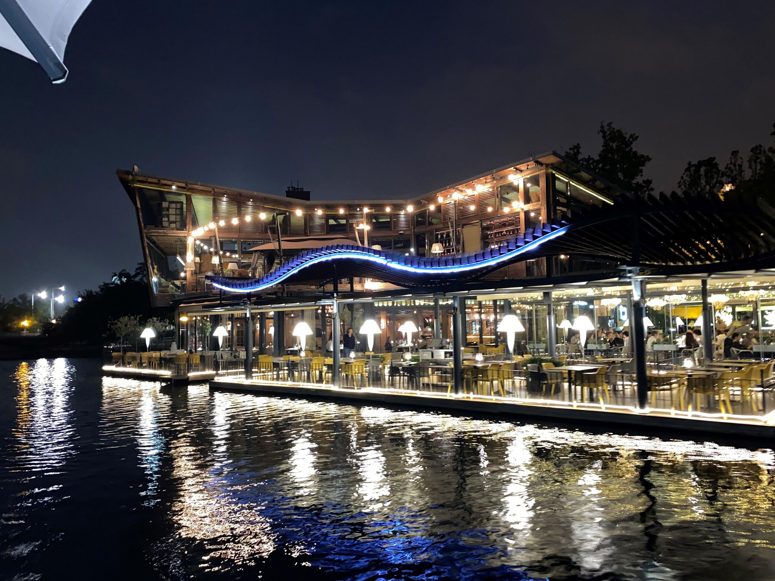 Így is mondhatjuk. Az elektromos motor által hajtott kis katamarán lassú köröket leírva szeli a vizet, hogy aztán a rajta helyet foglaló vendégek időnként kikössenek és egy ételkölteménnyel újra induljanak ki a „nyílt vízre”.