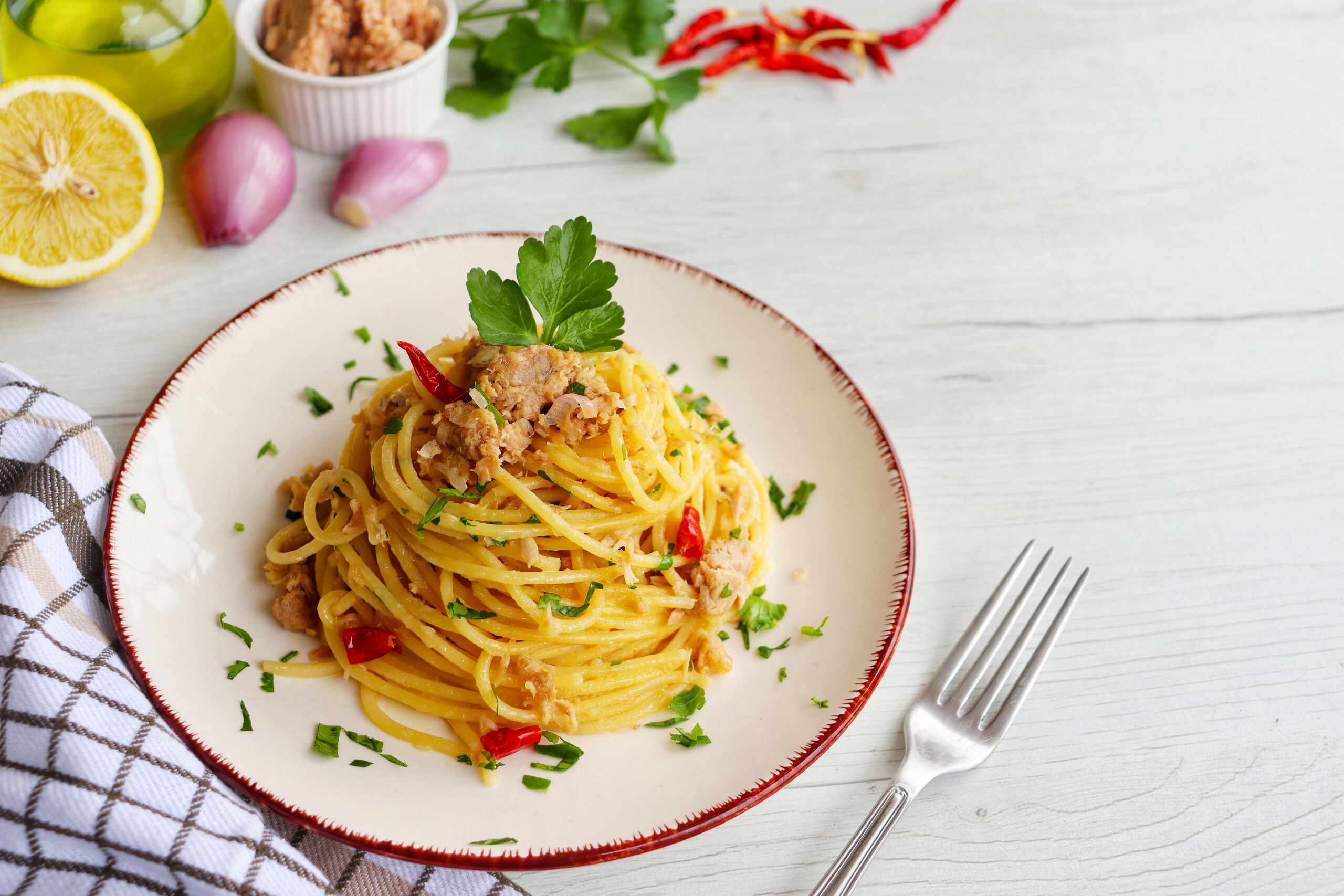 A Bon Appétit receptje szerint forraljunk fel egy nagy fazék vizet. Bőségesen ízesítsük sóval, majd adjunk hozzá egy csomag spagettit, és főzzük a csomagolás utasításai szerint. Amíg a tészta fő, tegyünk három olívaolajas tonhalkonzervet egy nagy keverőtálba, ezután villával törjük össze. Ezt követően egy fél olvasztott vajat adjunk hozzá a halas péphez, és szórjunk rá frissen őrölt borsot. Utóbbit ízlés szerint.