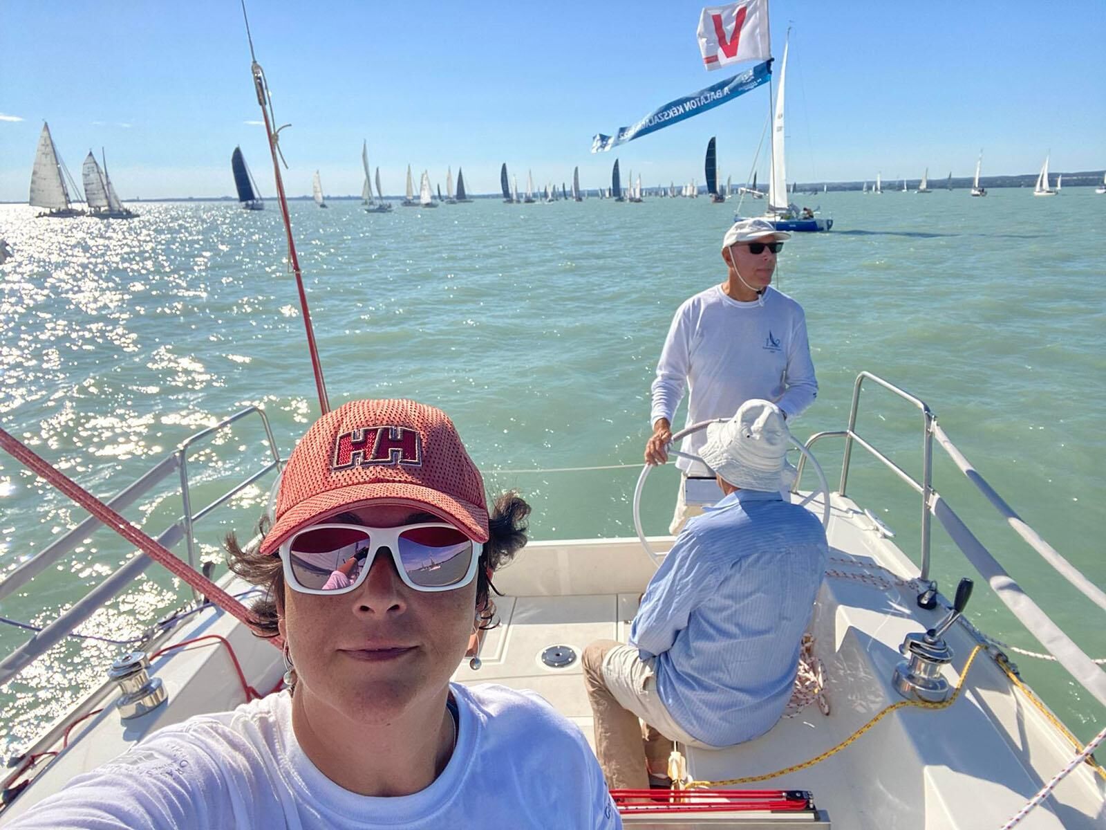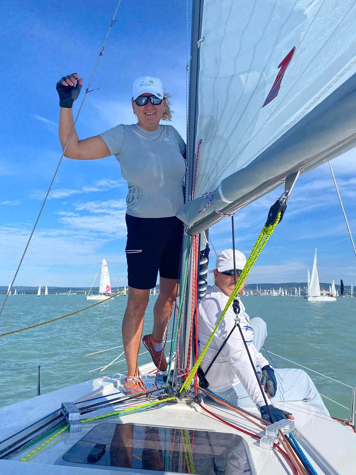 Újabb boldog célba érkezővel sikerült beszélnünk. Gyenei Gyöngyvér felelt többek között a Rozália hajó grószshotjának (nagyvitorla) kezeléséért. Izgalmas versenyen vannak túl, ezzel a Mannschafttal és ezzel a vitorlázattal először versenyeztek, ezzel együtt 23 és fél óra alatt beértek. Hölgyek hárman voltak a fedélzeten a két férfi mellett, ezért masszívan kivették a részüket a melóból. Nagy havária nem történt, nem vesztettek el semmit a Balatonban, legfeljebb néha a kötelek gubancolódtak össze.