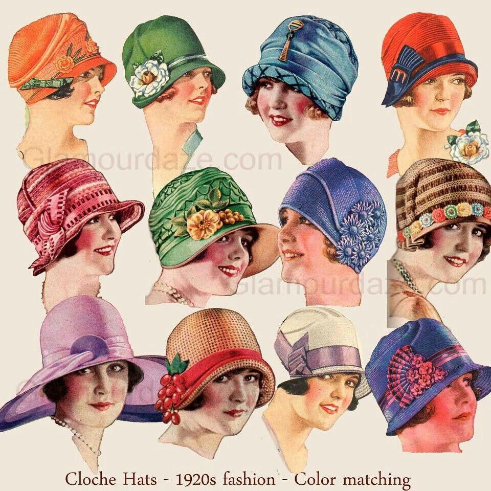 Sokan úgy vélik, hogy a húszas évek kalapdivatja kimerül az aprócska, Cloche-kalapban, de az évtized elején rendkívül divatosnak számítottak a nagyobb karimájú, lefelé logó fejfedők is. Feltűnő változás a kalapok viseletében, hogy a húszas években nem mutattak homlokot a nők, a karimával szinte még a szemöldöküket is eltakarták.