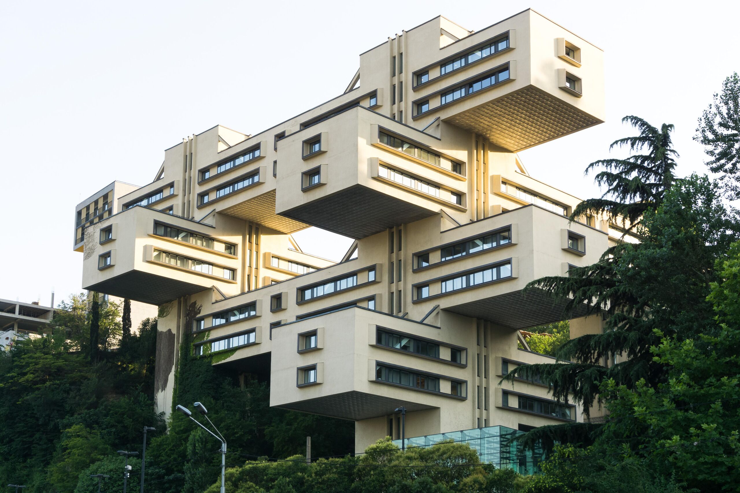 Az 1975-ben megnyitott, furcsa külsejű épület a grúz főváros egyik legikonikusabb szovjet korabeli épülete, tervezői G. Chakhava és Z. Jalaghania voltak. Korábban a 11 ezer négyzetméteres, 8 szintes tetrisz-kinézetű erődítmény a Szállítmányozási és Közúti Minisztérium épületeként szolgált, 2007 óta azonban a Grúz Nemzeti Bank főhivatala működik benne. Grúziában jártunkban érdemes felkeresni a Szertartások Palotáját és a Nutsubidze Plato függőfolyosókkal összekötött lakóépületeit is, ha brutalista építményekre szomjazunk.
