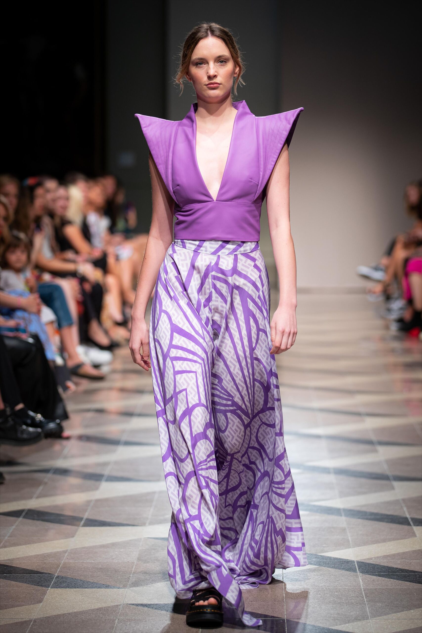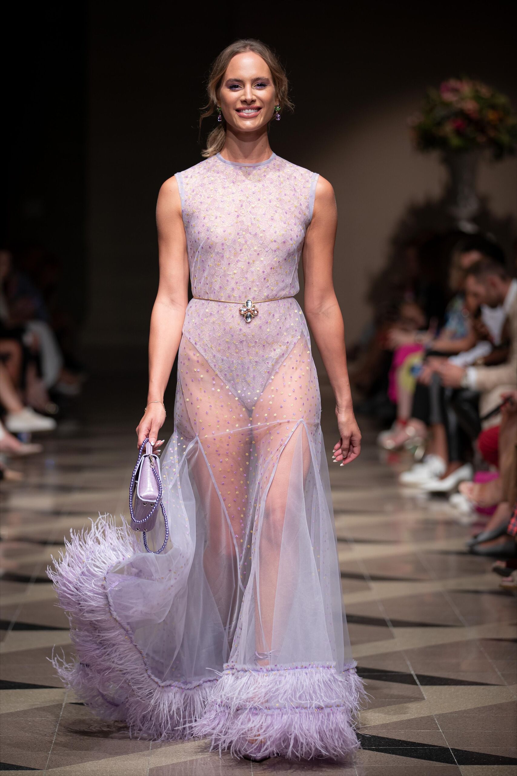 A Sentiments színekben és virágokban tobzódó kreációkkal készül a 2023-as tavaszi-nyári szezonra – ez a pasztell-lila ruha pedig a kollekció egyik statement darabjának számít.