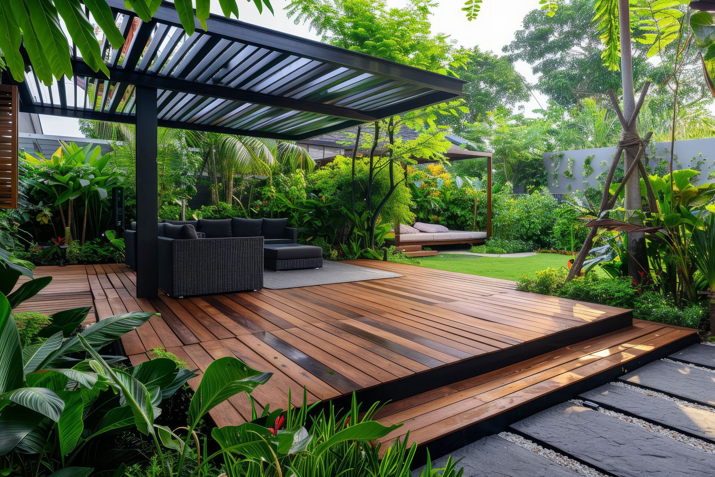 A modern kerttervezés bátran nyúl olyan anyagokhoz, melyek korábban nem voltak jellemzőek kültéri környezetben. A betonból készült járda vagy támfal egyben vizuális elem is, a rozsdamentes acél, az üveg, vagy az újrahasznosított műanyagok pedig izgalmas kontrasztot alkotnak a növényzettel. A natúr fa természetesen innen sem hiányozhat – ez vihet melegséget és természetességet a ridegebb felületek közé.