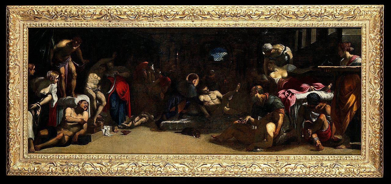 Giacomo Robusti il Tintoretto (1518-1594) képén Szent Rókus segíti a pestis áldozataitegy lazarettben.