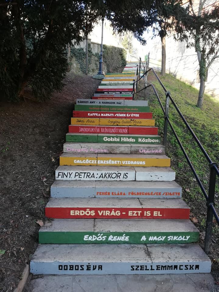 A Glücklich Vilma lépcső fokai könyvekké változtak át nőnap alkalmából. 47 magyar író- és költőnő létező könyveinek címét tartalmazzák a lépcsőfokok, melyeket a mai napon avattak fel.