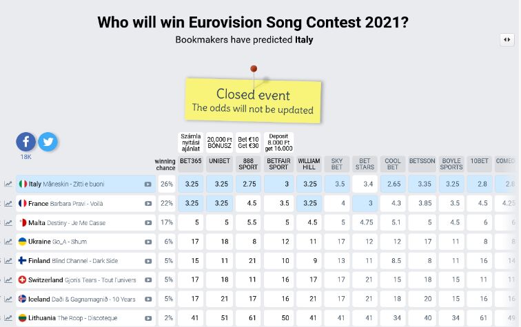 Az Eurovíziós Dalfesztivál előtt gyakorlatilag az összes jelentősebb fogadóiroda őket tartotta a legesélyesebbnek.