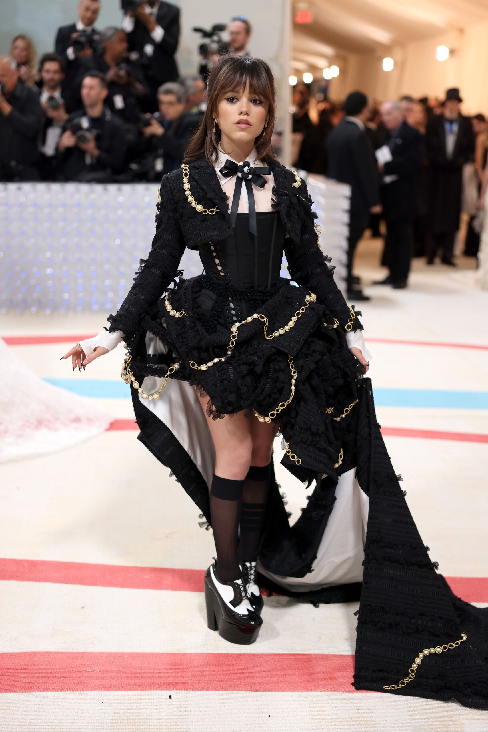 Hollywood üdvöskéjének, Jenna Ortegának dekonstruált, magasan dekoltált Thom Browne ruhakölteményében egy vagány tweeddzseki, egy hosszú kabát, egy fűzős ruha és egy tütüs balerinaruha keveredett. A választás telitalálat volt, és a szemfülesek beleláthatnak egy kis Wednesday Addams inspirációt is.