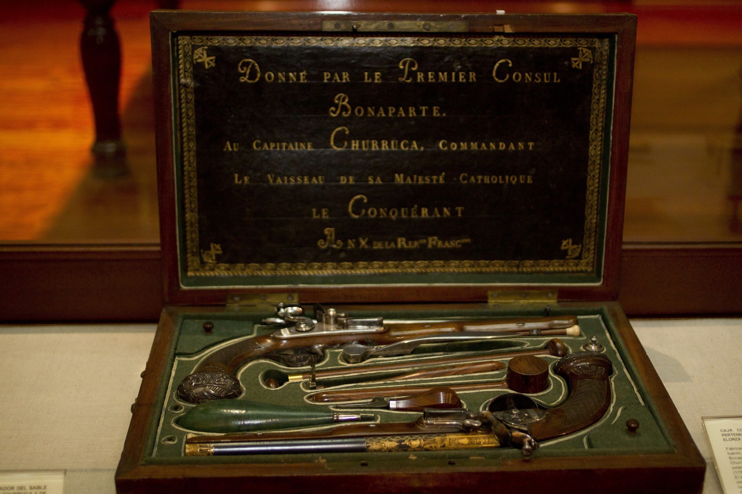 A fadobozban elhelyezett két, arannyal és ezüsttel berakott, valamint Napóleon portréjával díszített pisztoly a párizsi fegyvergyártó, Louis-Marin Gosset műhelyében készült, és előzetesen 1,2-1,5 millió euróra (470-590 millió forintra) becsülték az árukat – számolt be róla a BBC.