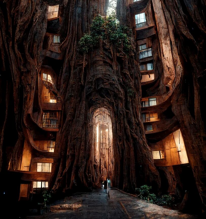 Ezután egy folyamatos folyamat során több ismétlésre került sor, és a kívánt eredmény elérése érdekében módosították a felszólításokat. Az eredmény egy olyan szürreális lakóház-sorozat, amely teljesen átveszi a természetet. A kivájt Hyperion fák funkcionális, lélegző építészetté alakultak át, a lakások befelé néznek, és a természetes fény beáramlik, hogy egy megvilágított, elvarázsolt természeti teret hozzanak létre.