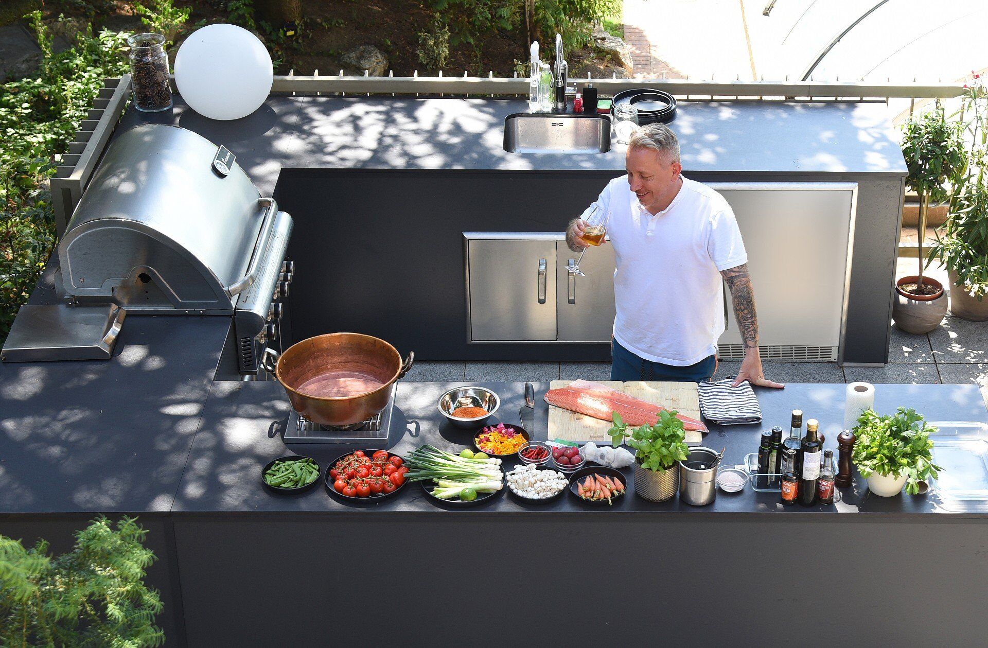 Mindenképpen. Egyértelmű volt, hogy a kinti konyhát egy az egyben átköltöztetjük. Imádok grillezni, a legjobb, mikor mind együtt vagyunk, a család, barátok megtöltik a kertet, én pedig sütögetek nekik. Mindehhez olyan konyhát álmodtam meg, amely tökéletesen alkalmas sok ember fogadására, sőt: akár forgatásokra is.