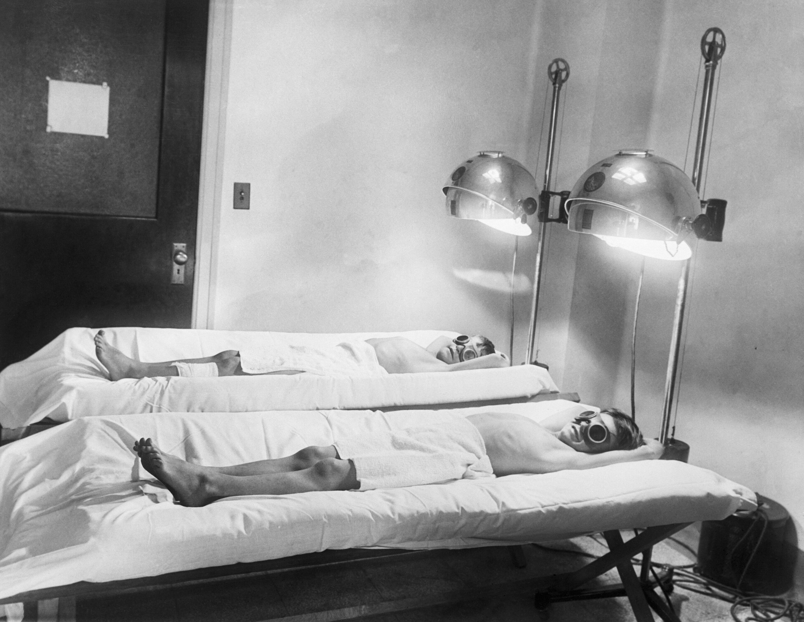 Tuberkulózisos gyermekek „napfürdőzése" egy amerikai kórházban. (1922)