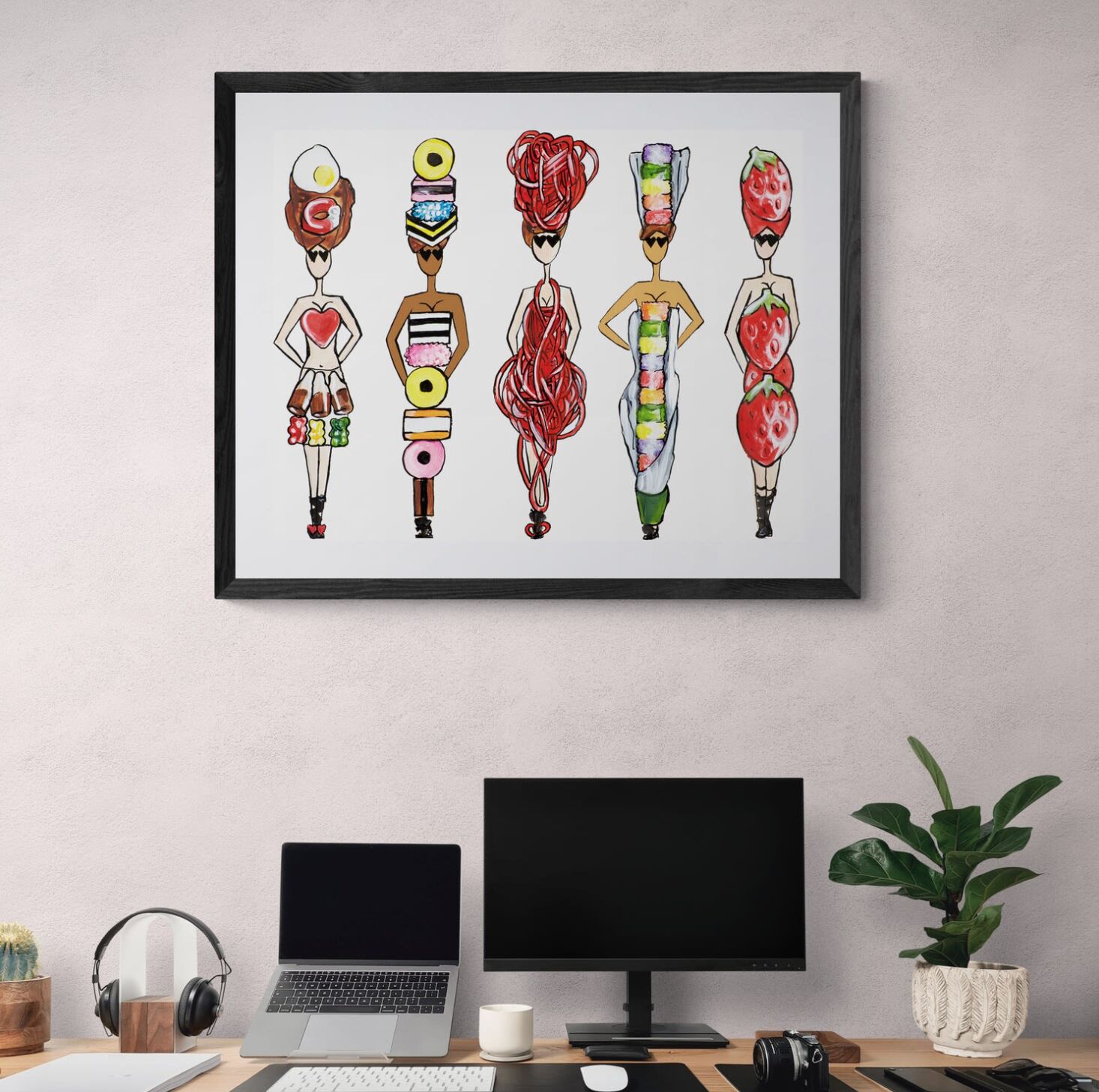 „Hello Sweetie” fantázianévre hallgat a brit kortársművész, Charlotte Posner alkotása, melyen gyermekkori kedvenc édességeit álmodta újra. Jellegzetes stílusával és élénk színhasználatával egy perc alatt vidámságot csempész képével az adott térbe.