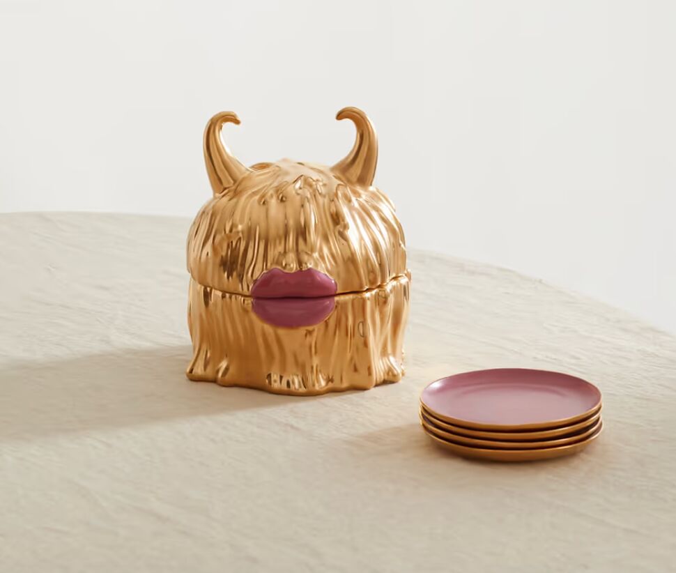 Ha már desszert, akkor nem lehet elmenni szó nélkül amellett sem, hogy mire tálaljuk a finomságokat. Az L'Objet Los Angelesben élő művészekkel való kollaborációjából született meg a kis szörnyecske, ami magában rejti a porcelántányérokat. Igazán mutatós darab!