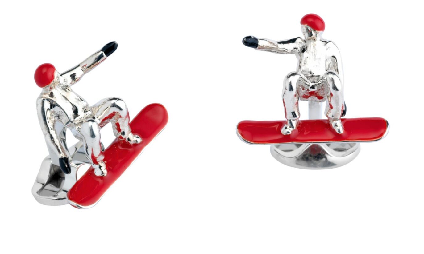 A snowboardozás szerelmesei szezontól függetlenül is szívesen mutatják meg, melyik sportágért dobban a szívük. A Deakin & Francis ezüst mandzsettáival pedig mindezt elegáns körülmények között is megtehetik: a szemet gyönyörködtető miniatűr alkotásokat a kézzel zománcozott részletek teszik kellően egyedivé.