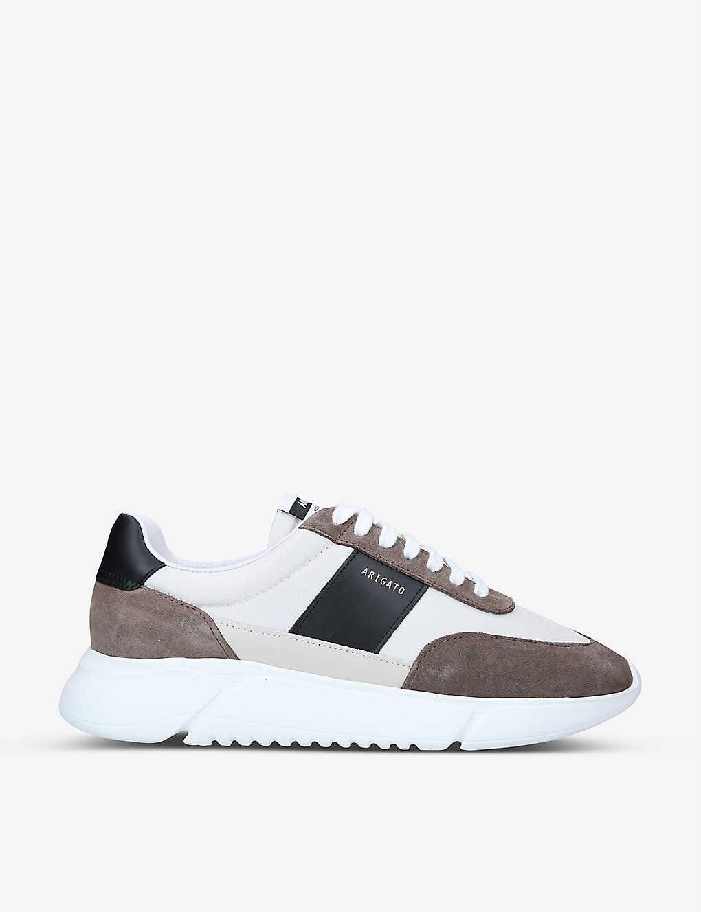 Akár a természetet járjuk, akár a nyüzsgő utcákat, ez az Axel Arigato edzőcipő tökéletes társunk lehet. Míg a bélése 100%-ban újrahasznosított PET palackokból létrejött poliészterből áll, addig külső részét 40%-ban újrahasznosított nylon, 60%-ban pedig bőr teszi ki. A Portugáliában készült lábbeli igazi környezettudatos választás.