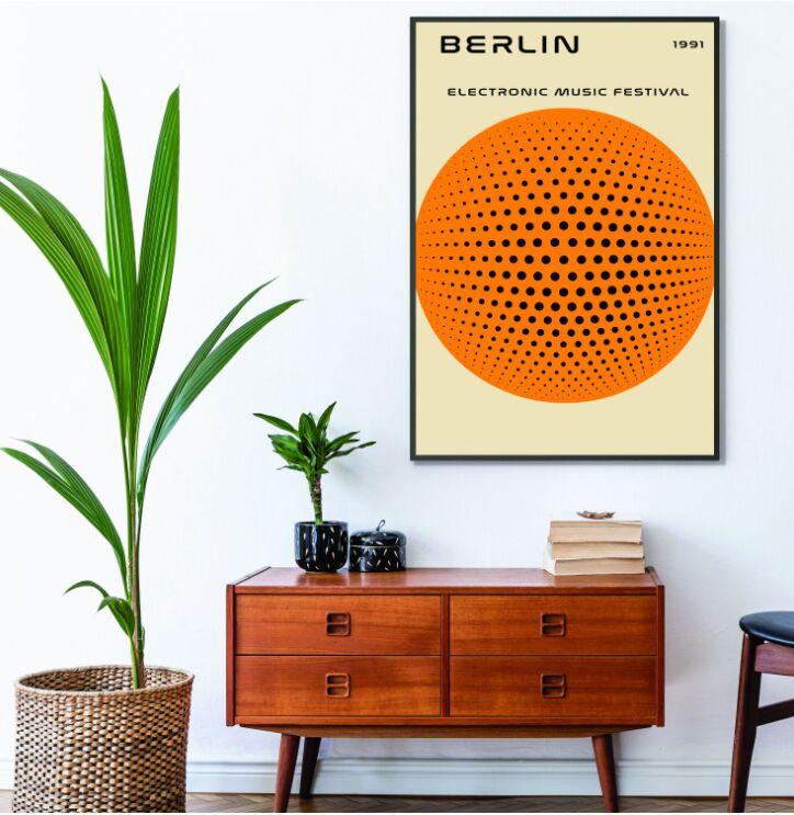 Berlin neve a 90-es évek után végérvényesen összeforrt az elektronikus zenével, így sokak első látogatása a német fővárosba összekapcsolódik valamilyen felejthetetlen zenei élménnyel. A retró stílus és az elektronikus zene kedvelői ezzel az egyszerű, de mégis ikonikus plakáttal vihetnek egy csepp játékosságot az otthonukba.