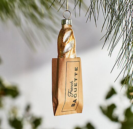 Sosem lehet elég korán elkezdeni készülődni az ünnepekre, a dekorálást pedig sokan már Halloween után el is kezdik. Nehéz is lesz megállni, ha ezt a francia bagettet ábrázoló üvegdíszt a magunkénak tudhatjuk. Ránézve szinte érezzük a frissen sült kenyér illatát és halljuk a kenyérhéj ropogását.