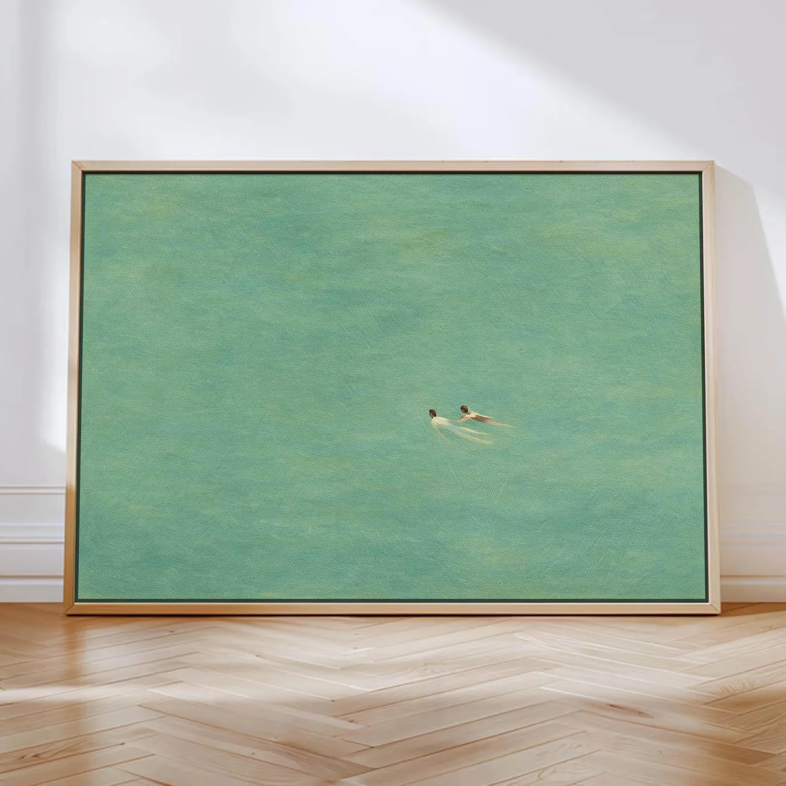 Ez a zöld tónusú, minimalista nyomat egyszerre modern és időtlen. Klasszikusságának köszönhetően könnyen beilleszthető szinte bármilyen enteriőrbe. A visszafogott színek és finom textúrák elegánsan jelennek meg a falon, minden feltűnés nélkül.