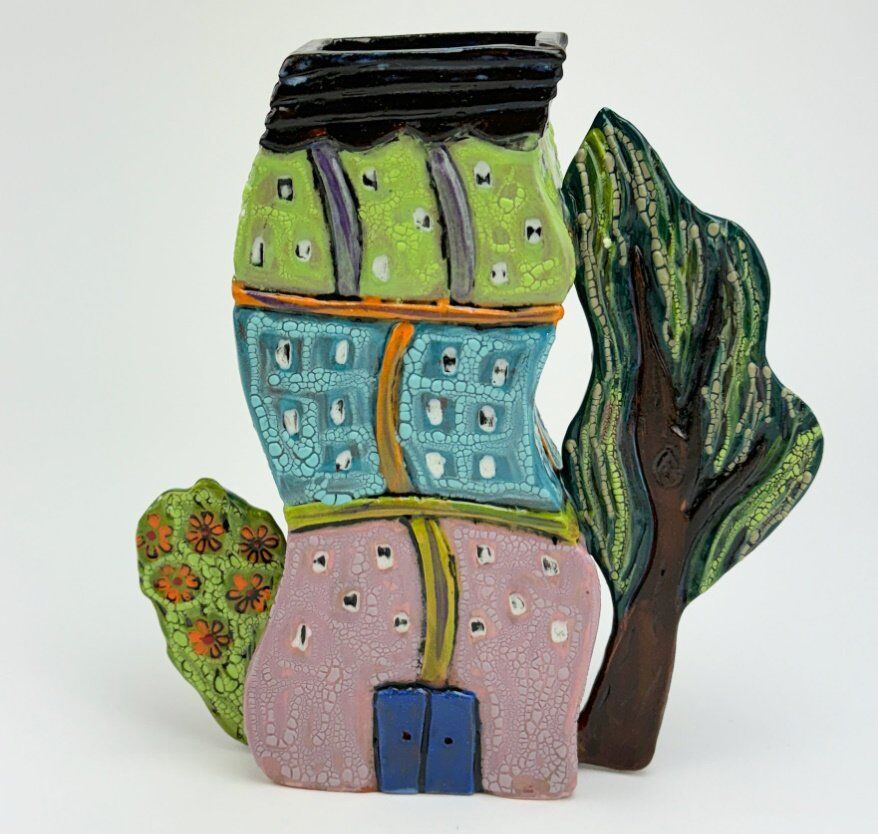 Az olaszországi Cinque Terre sokszínű épületei ihlették ezt a játékos hangulatú, kézzel készített cserépvázát, amely az őszi napokba is azonnal visszahozza a nyári hangulatot, emlékeket vagy akár a jövőbeli utazási terveinket.