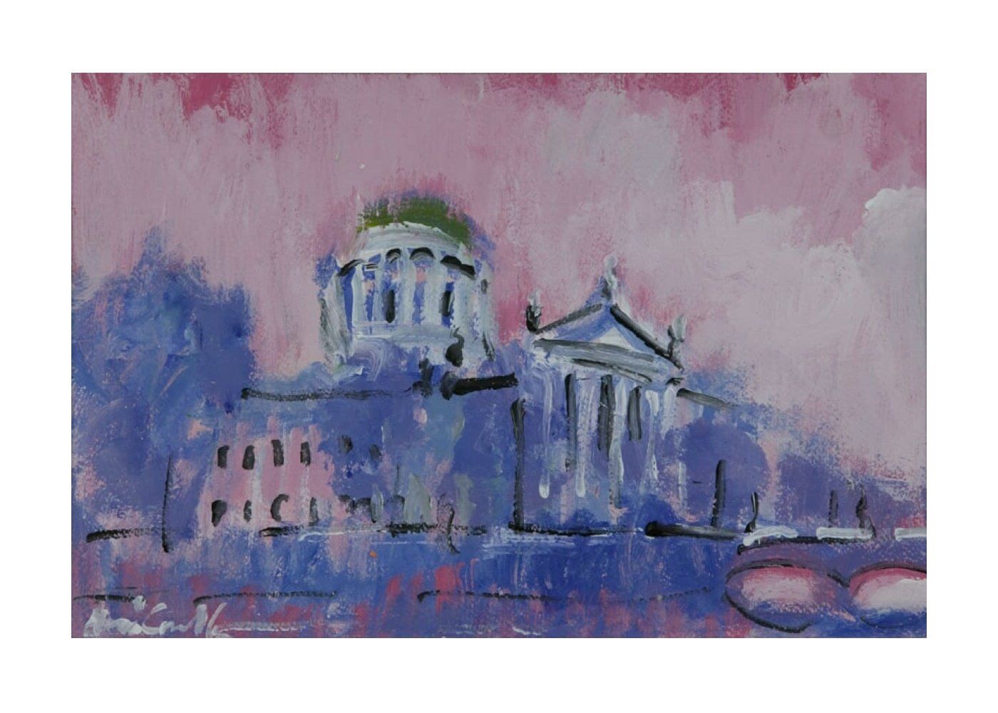 A Londonban született festő, Marie Carroll a 70-es években költözött Írországba. Művészetének inspirációját az ír főváros és az azt körülvevő vidéki régiók adják. Dublin rózsaszínben című festménye különleges szemüvegen keresztül mutatja be a város egy részletét.