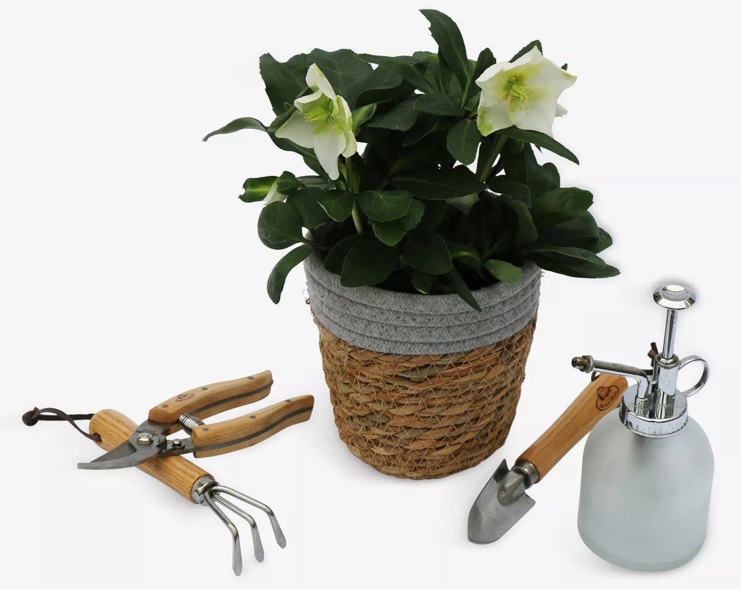 Ajándéknak is kiváló, de akár saját magunknak is beszerezhetjük a Your London Florist városi kertész szettjét, amely egy ültetőkanalat, egy metszőollót, egy talajlazító kisgereblyét és egy vízpermetező sprayt tartalmaz. A csomag része ezenkívül egy hunyor névre hallgató, fehér virágú növény is, amin egyből ki is próbálhatjuk vadiúj kertészeti eszközeinket.