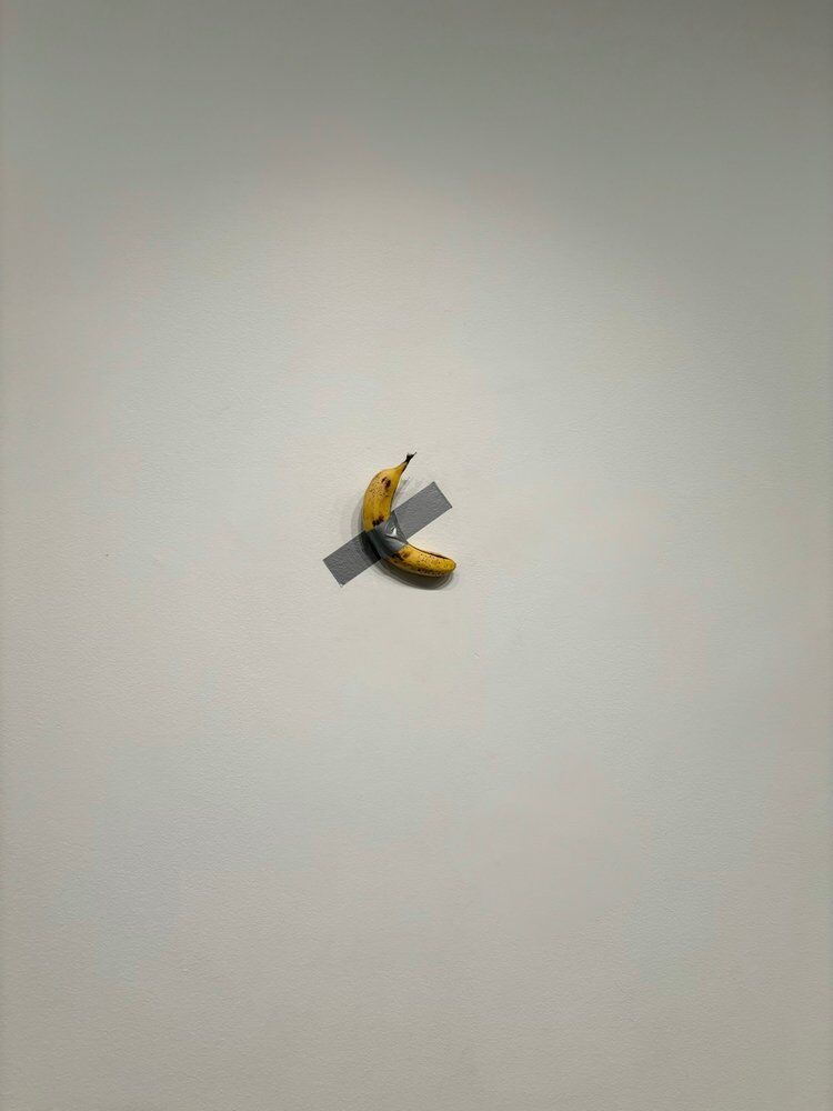 A műtárgy nem más, mint egy teljesen hétköznapi sárga banán, amit egy ezüst ragasztószalaggal egy fehér falfelületre rögzítettek. Cattelan meghökkentően egyszerű alkotása 2019-ben debütált először az Art Basel Miami Beach vásáron, és természetesen azonnal nagy port kavart a kortárs művészet kedvelői között.