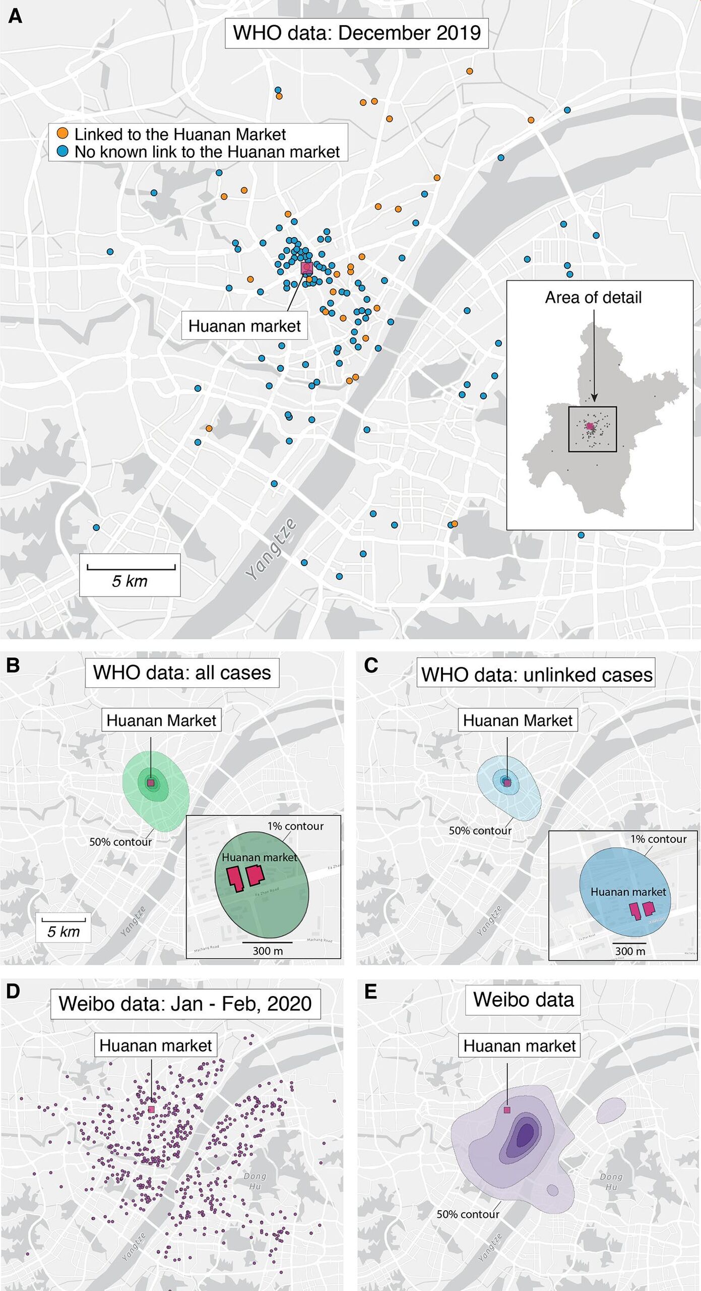 A Science című tudományos folyóiratban közzétett tanulmányukban a nemzetközi kutatócsoport megállapította, hogy ezeknek a személyeknek a többsége a Jangce folyó nyugati partjának közelében élt, ahol a hírhedt wuhani piacok találhatók.