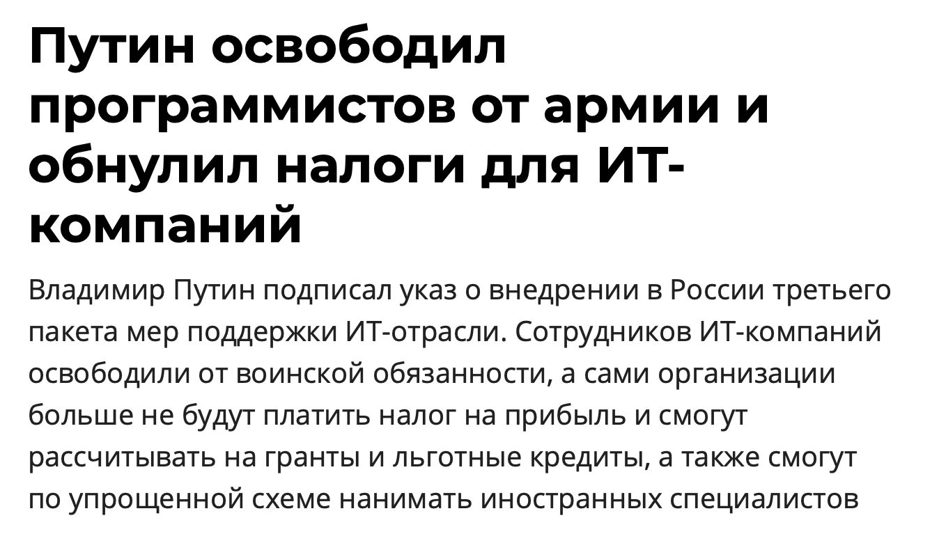 Of course the door will close soon. Putin already started using "carrot" giving many new privileges to IT specialists and companies, most importantly, freeing the IT workers from the military draft. What does it mean? It means soon he'll use stick to stop the brain drainpic.twitter.com/VlZtnj6akI