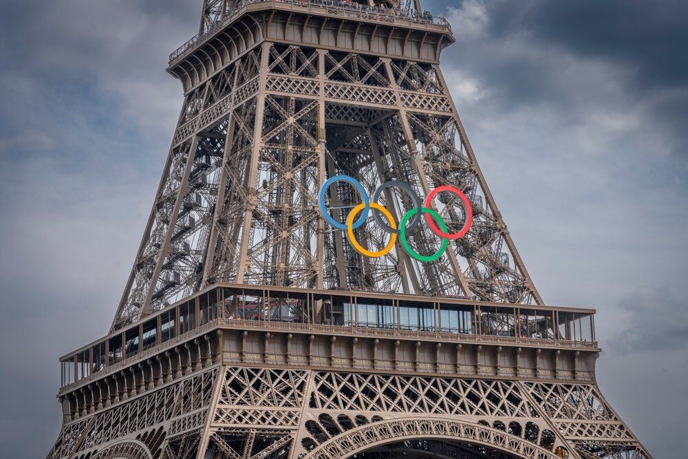 Az Eiffel-torony az olimpiai logóval (illusztráció)