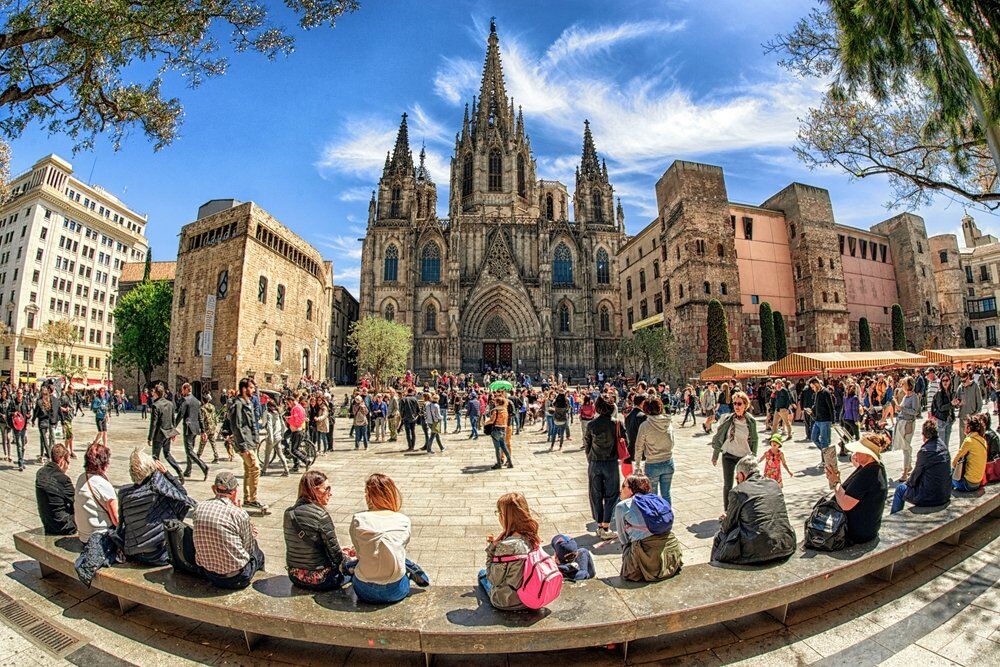 Turisták a barcelonai katedrális előtt. Fotó: Shutterstock
